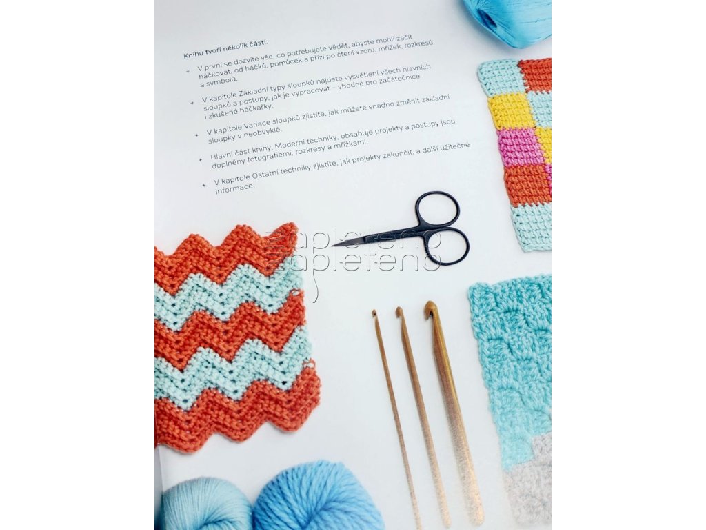 Kniha vás krok za krokem provede moderními háčkovacími technikami jako: